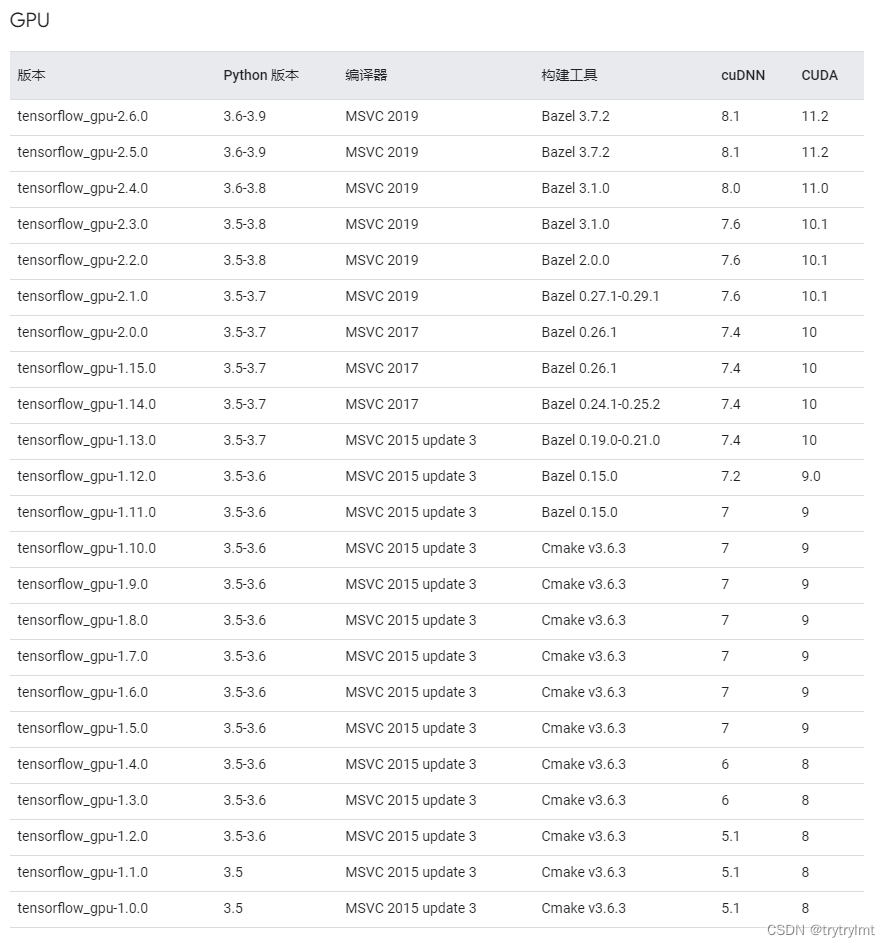 // TensorFlow-gpu是2.6的 按照官网下载相应的版本