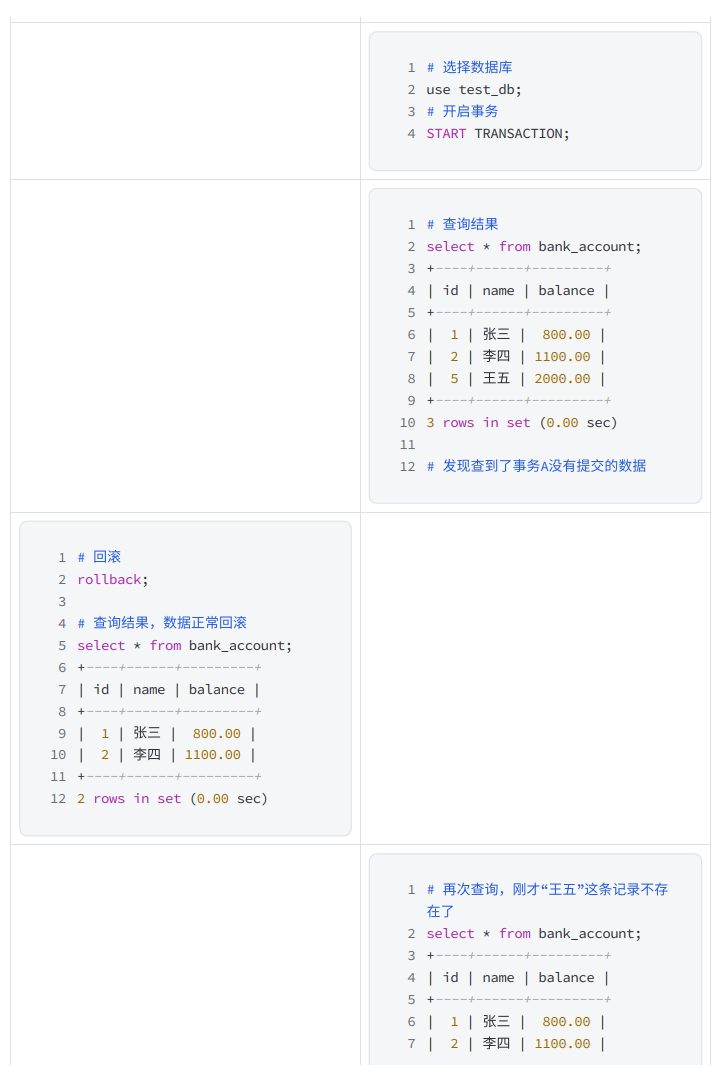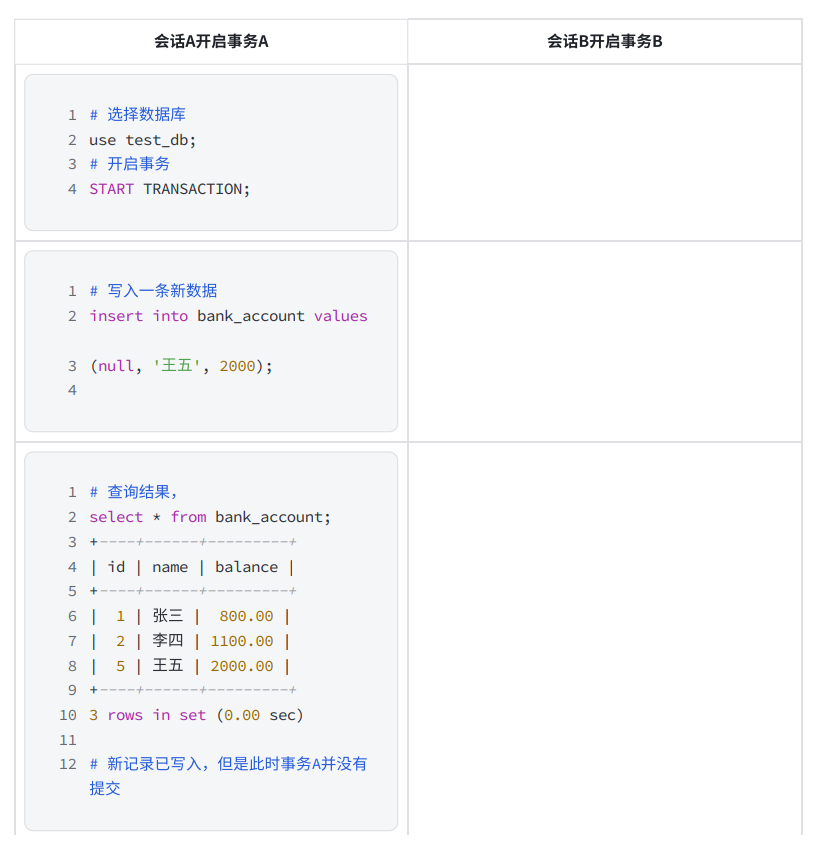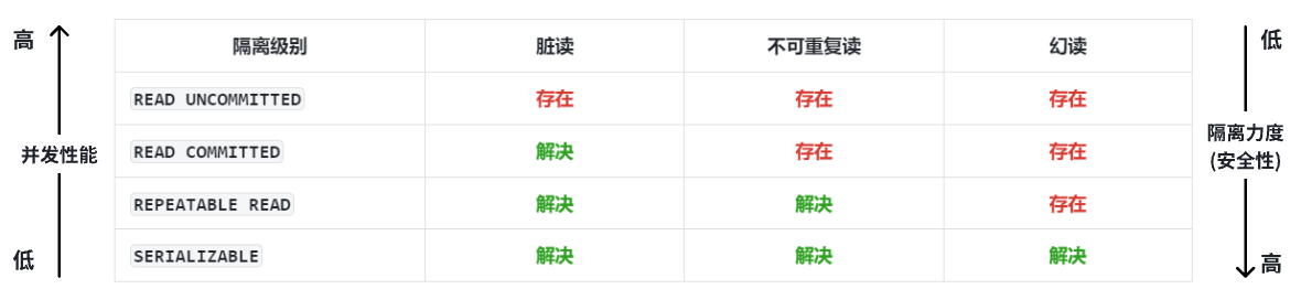 由于在读取数据时不做任何限制所以并发性能很高,但是会出现⼤量的数据安全问题,比如在事务A中执行了⼀条 INSERT 语句,在没有执行 COMMIT 的情况下,会在事务B中被读取到,此时如果事务A执行回滚操作,那么事务B中读取到事务 A写入的数据将没有意义,我们把这个理象叫做 "脏读" 。