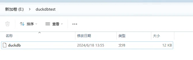 我们就可以看到,我们创建的名为duckdb的数据库本质上就是一个文件。