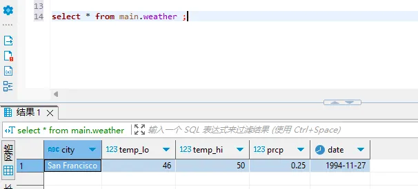 刷新后,左侧在main —— 表下已经出现weather表