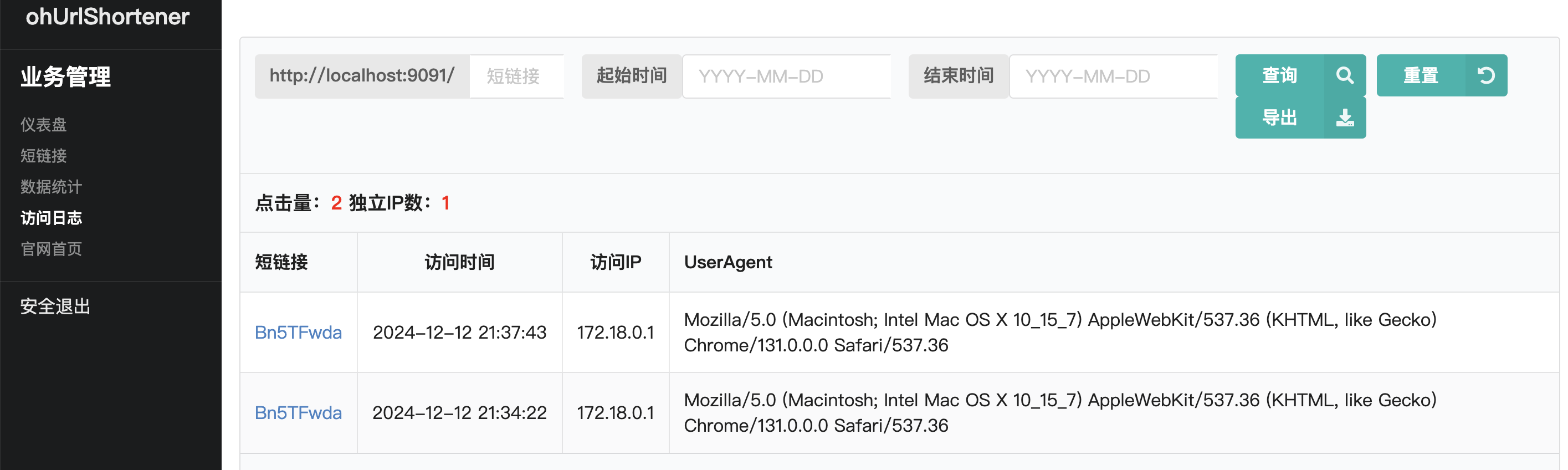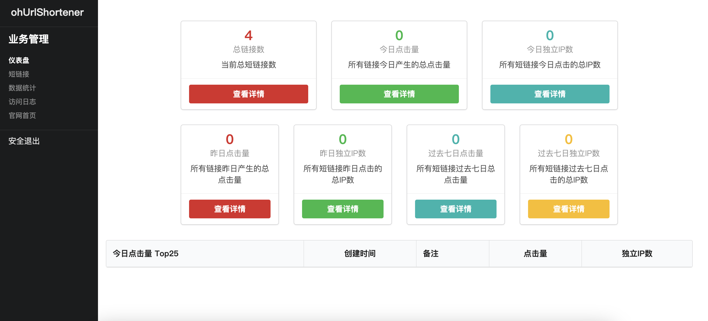 ohUrlShortener不仅支持页面操作,对于企业来说,更需要的是将短链接服务集成到自有系统中。ohUrlShortener拥有对应API,开发者可以通过调用API的方式创建短链接或者查看数据。