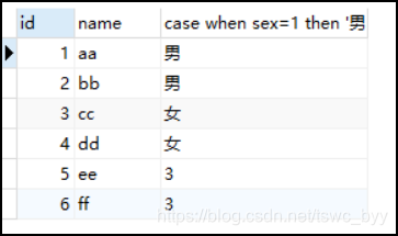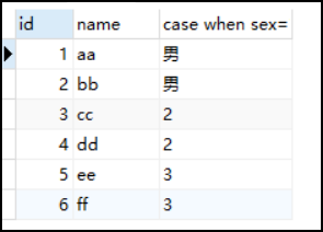 select id,name,case when sex=1 then '男' when sex=2 then '女' else sex end from stu;
