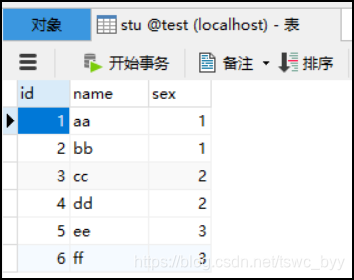 INSERT INTO `stu` VALUES ('1', 'aa', '1');