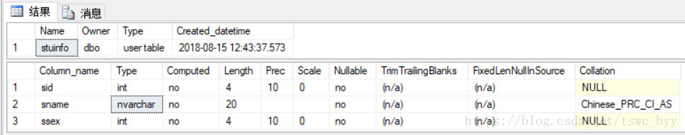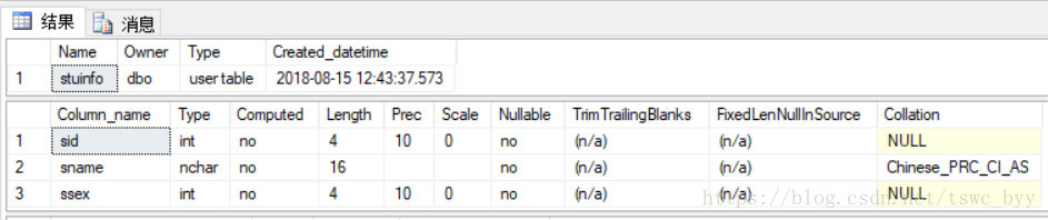 sname nchar(8) not null, --sname 学生姓名 类型nchar(8) 非空