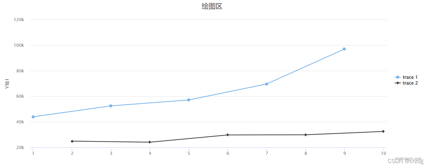改进:删除X轴的categories;并且将series中的data改成一个二维数组(即曲线上的点集合)。此时坐标轴共用了。
