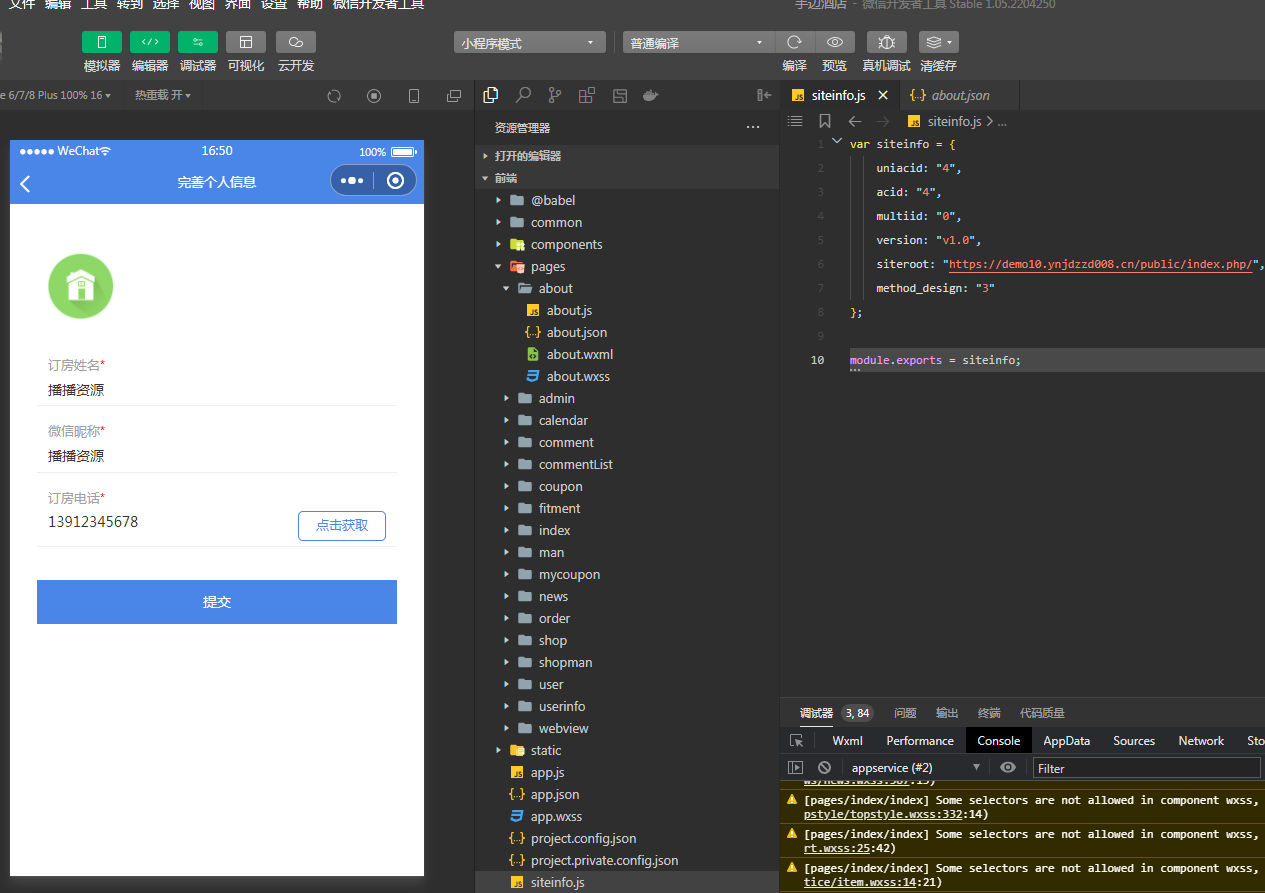 小程序端首页演示及配置文件,域名和ID修改成自己的
