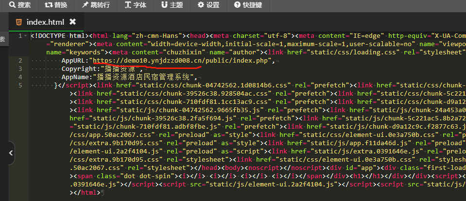 3、修改目录下/public/admin/index.html 里的网址,对照下图