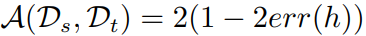 A-distance 通常被用来计算两个领域数据的相似性程度,以便与实验结果进行验证对比。