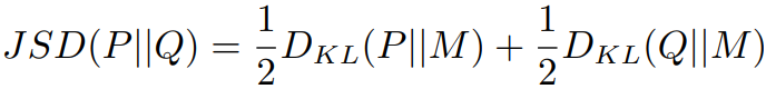 Jensen–Shannon divergence,基于 KL 散度发展而来,是对称度量: