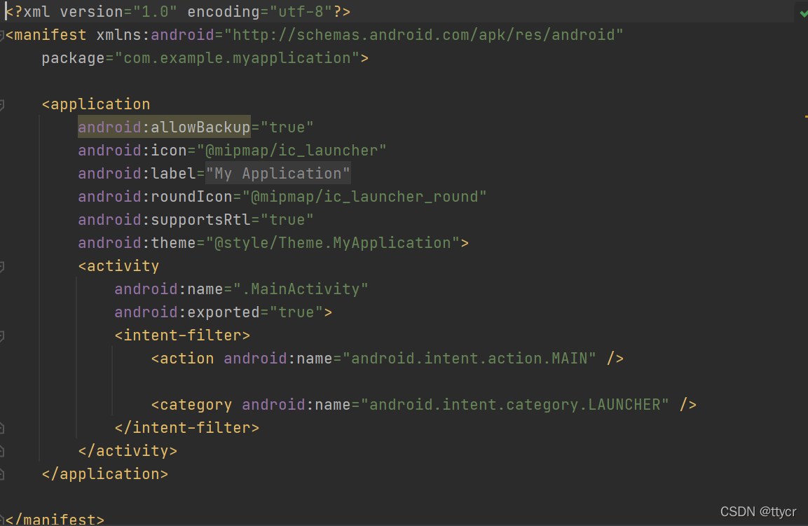 通常情况下,每个Android应用程序必须包含一个AndroidManifest.xml文件,位于manifests节点下。它是整个Android应用的全局描述文件。在该文件内,需要注明应用的名称、使用图标、Activity和Service等信息,否则程序不能正常启动。