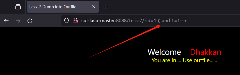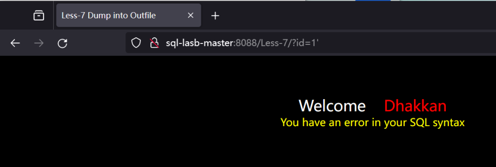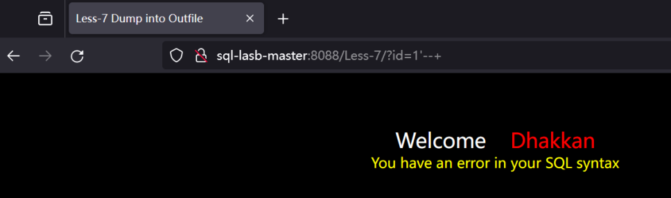 使用http://sql-lasb-master:8088/Less-7/?id=1’和?id=1’--+ 下面是显示结果。