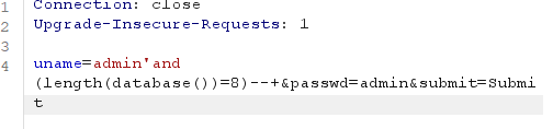 uname=admin&passwd=admin'or 1=1 --+&submit=Submit