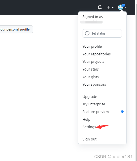 登录自己的GitHub鼠标移动到头像那点击Settings