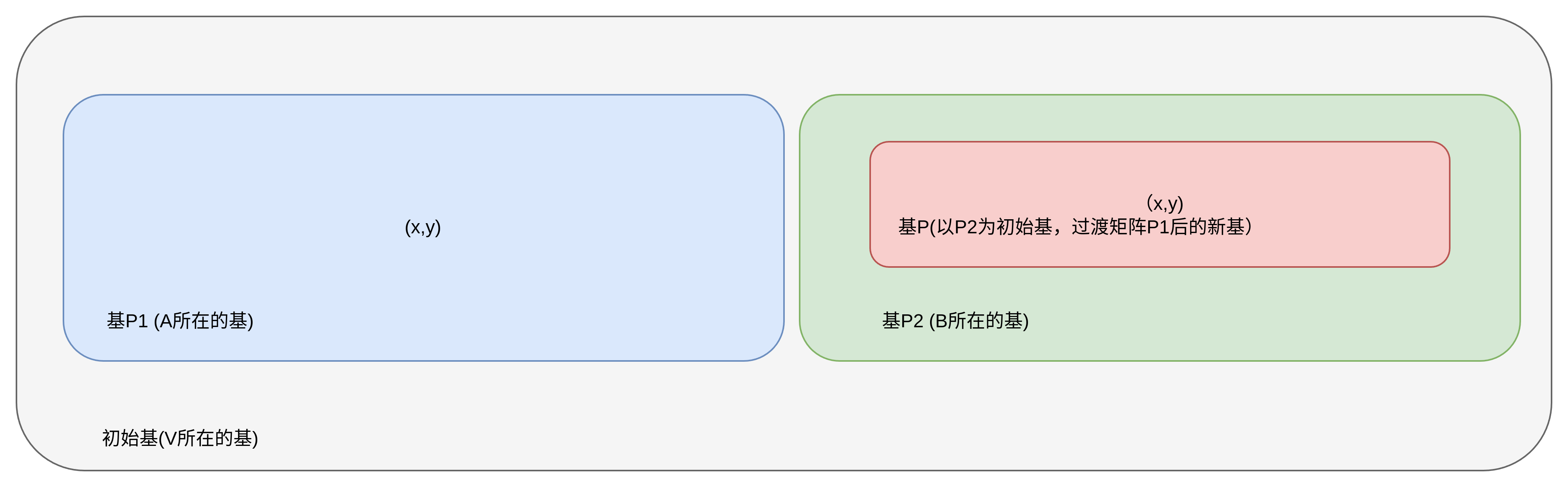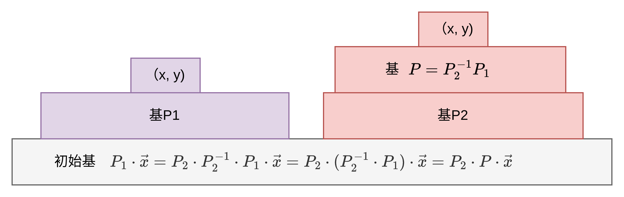 如下图所示,基P下的坐标(x,y)是相对于初始基的不动点,也就是说: