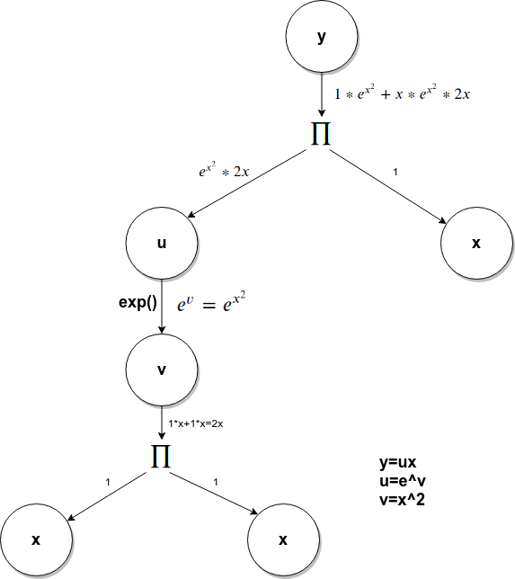计算图中,可能会出现同一个节点出现在图的不同位置的情况,比如,如下函数的计算图: