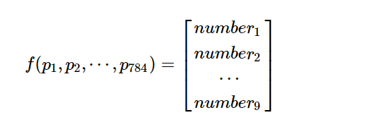 看成函数的话,每一层的输入时上一层神经元的输出(除了第一层是数据输入外),而每一层的输出又成为了下一层的输入。整体上看,输入经过网络的处理后,变成了输出,例如,上面的网络可以看成如下784输入10输出的函数:
