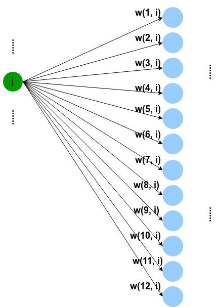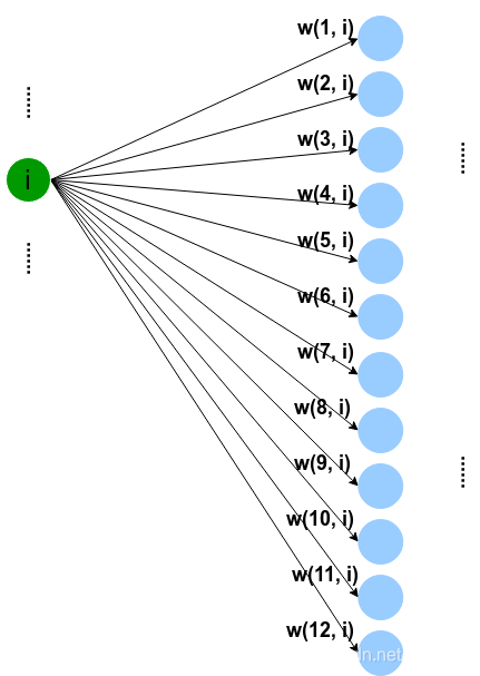 假设第一层的第i个节点对第二层的j的节点的权重为: