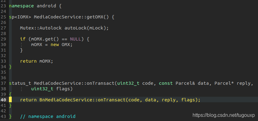 MediaCodecService.cpp的实现,onTransact也是binder server的响应客户端请求的主要入口函数。