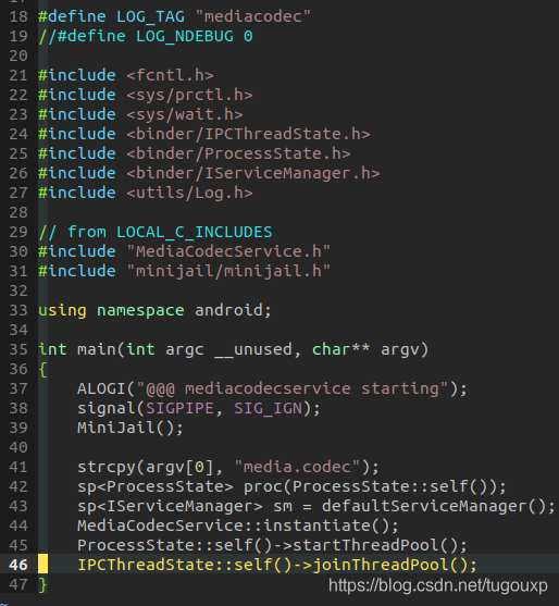 main_codecservice.cpp的实现,可以看到这完全是一个安卓服务该有的初始化样子: