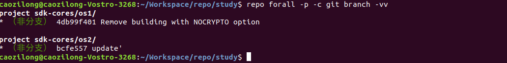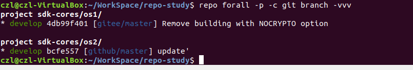 czl@czl-VirtualBox:~/repo-study$ repo forall -p -c git branch -vvv