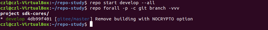czl@czl-VirtualBox:~/WorkSpace/repo-study$ repo start develop --all