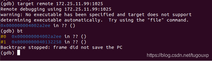 (gdb) target remote 172.25.11.99:1025