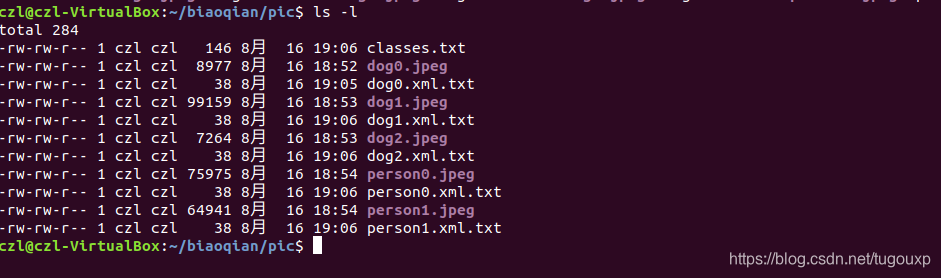 czl@czl-VirtualBox:~/biaoqian/pic$ ls -l