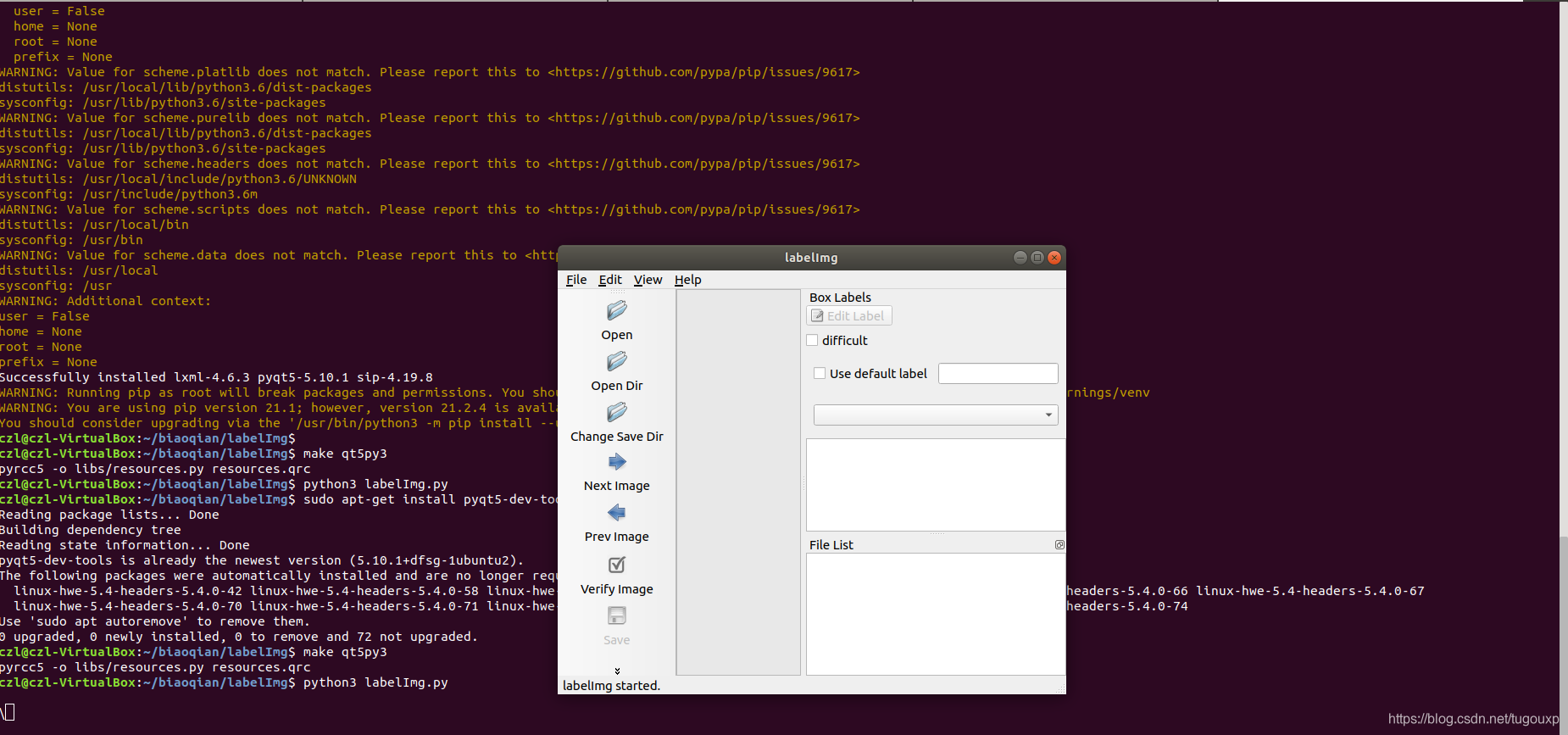 czl@czl-VirtualBox:~/biaoqian/labelImg$