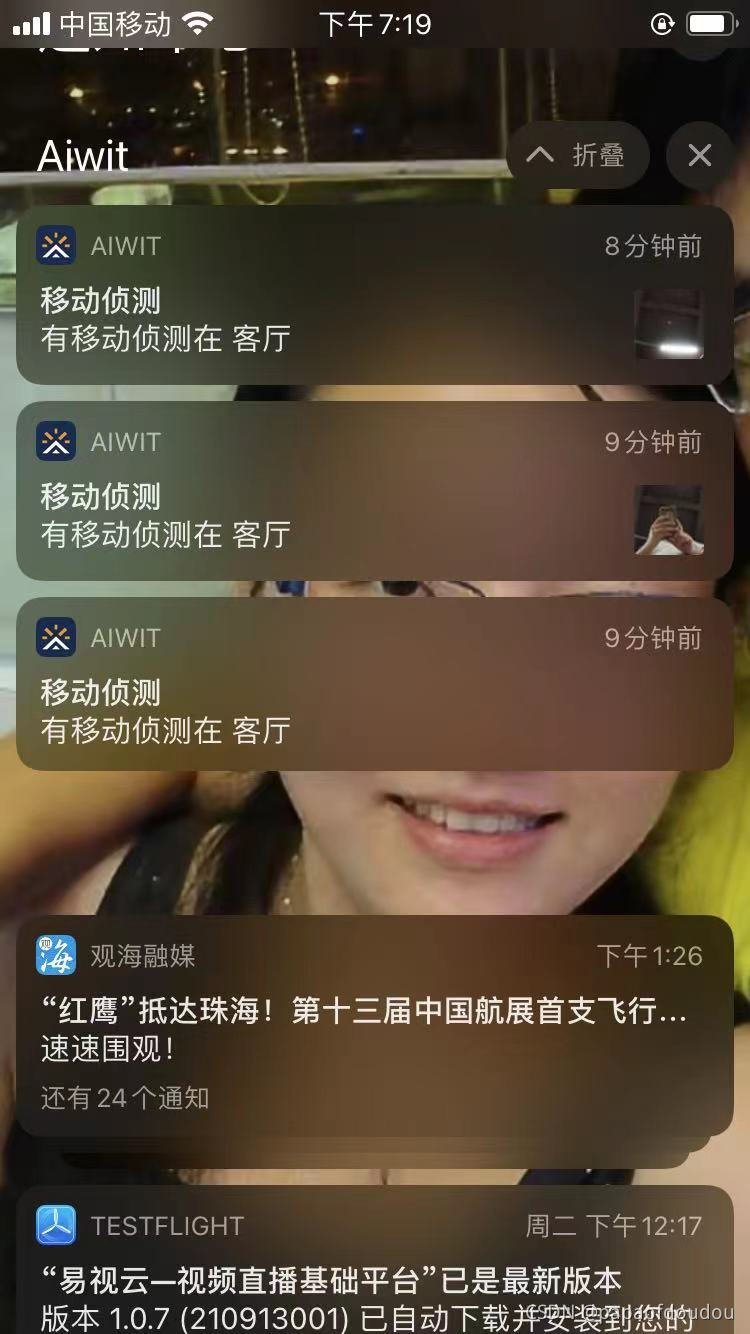 片刻间,已经生成了多条移动侦测的信息发到手机: