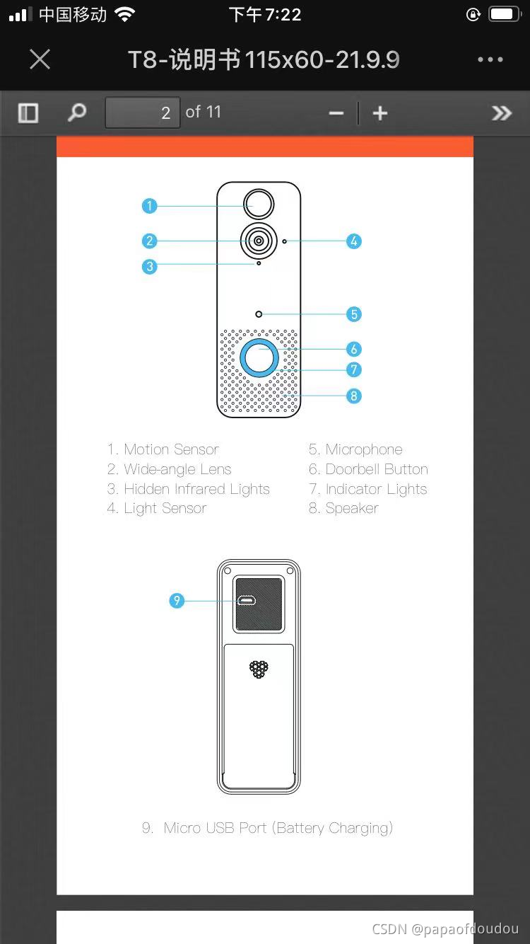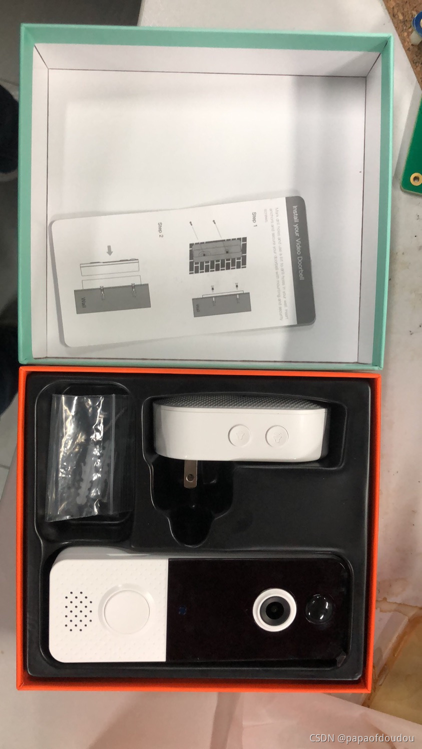看到有充电线,就知道这款产品支持充电的电池IPC。总体看,设计非常时尚前卫,颜值不错,挂载门边作为装饰也好不是么:). 美中不足的是,门铃的安装方式需要在墙上打孔,破坏墙面不说,电钻啥的也不是每家都备的. 感觉不如那种直接黏贴在墙上的来的方便。