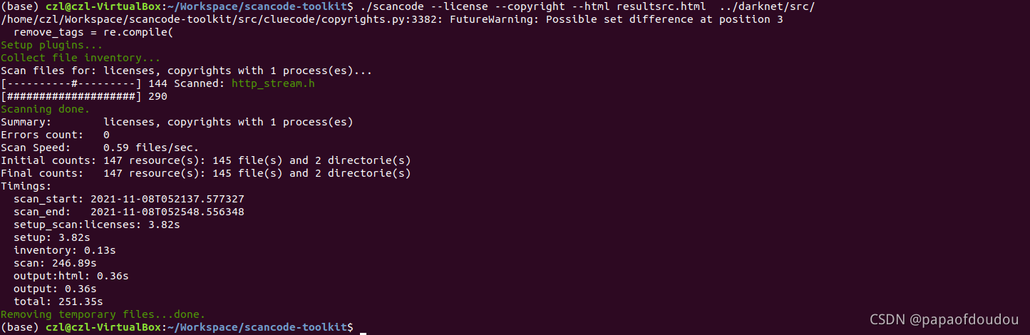 ./scancode --license --copyright --html resultsrc.html ../darknet/src/