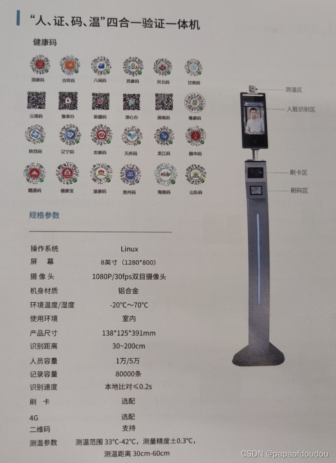 人(脸识别),证(件扫描),(扫)码,(测)温一体机