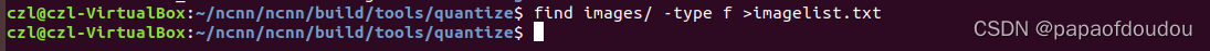 之后,执行命令 find images/ -type f >imagelist.txt,创建图像文件列表。