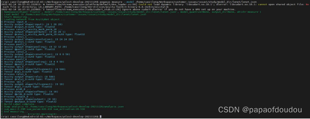 同时生成了analysis.json文件,里面列出了各层的算力需求清单,我们直接看第二层conv层面的分析数据,注意看第40行,macc值为:288000,和理论值差着一个因子2,原因何在?