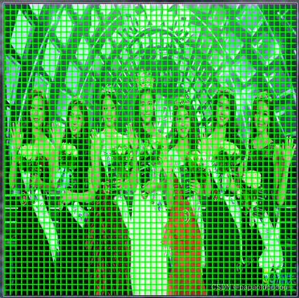 开发程序,分别对图像进行32倍,16倍和8倍下采样,画出网格: