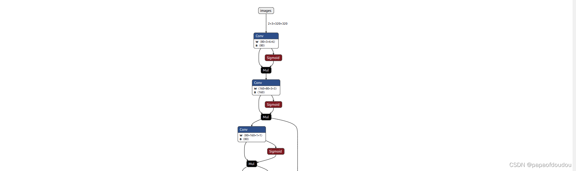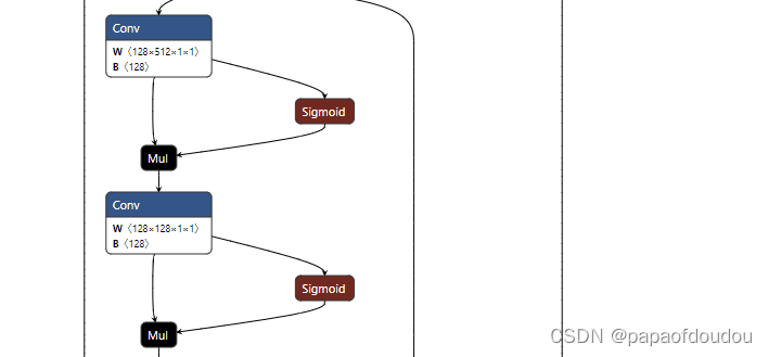 YOLOV5s中很多类似的结构,开始我还以为是卷积后求sigmoid之后和原卷积输出矩阵做矩阵乘法,后面看了libonnx的代码,才发现不是,矩阵对应元素做乘法。