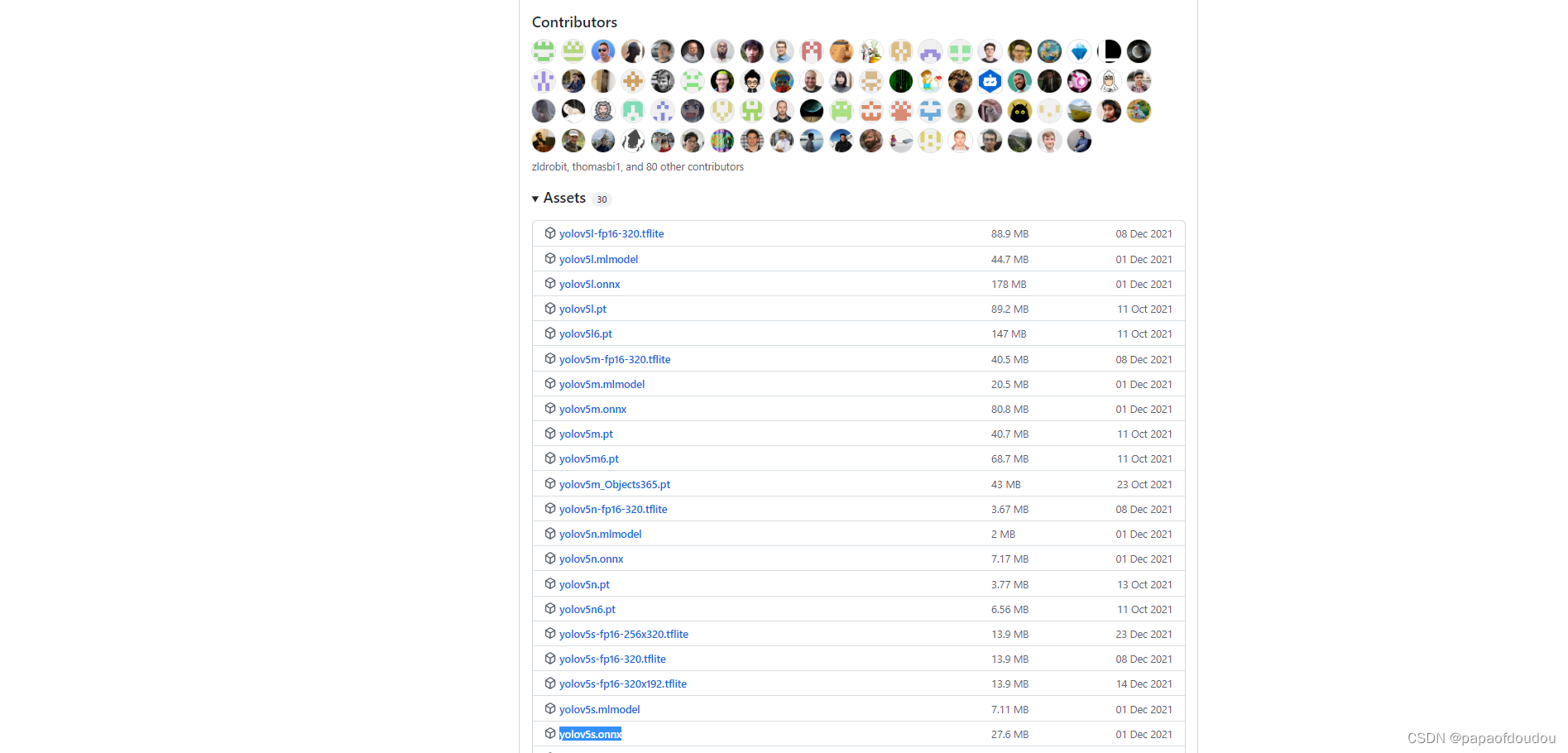 下载链接 :Releases · ultralytics/yolov5 · GitHub以下模型均可用: