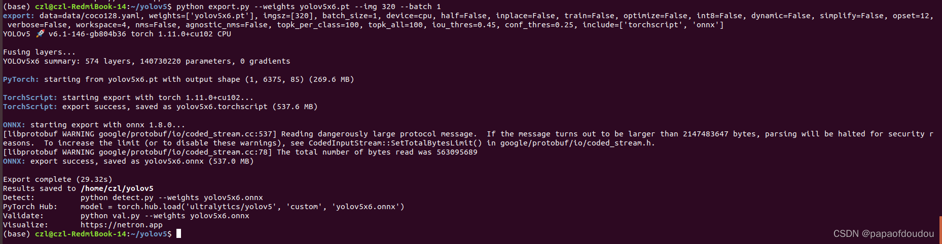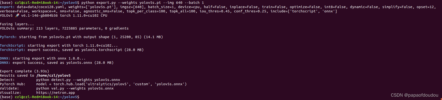 python export.py --weights yolov5s.pt --img 640 --batch 1