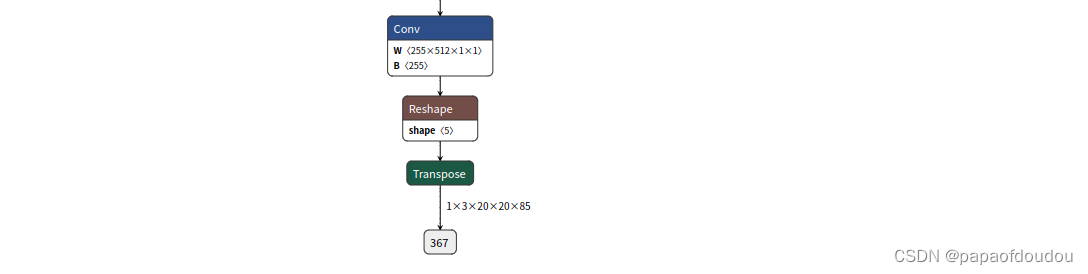 而通过ONNXSIM处理后,网络的对应层便成为了如下的样子,每层的输入输出形状都体现出来了。
