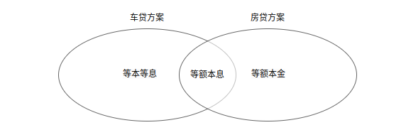 除了前面提到的等额本金和等额本息两种贷款方式,还有一种广泛使用在车贷中的贷款方案:等本等息。车贷中没有等额本金,房贷中则没有等本等息:
