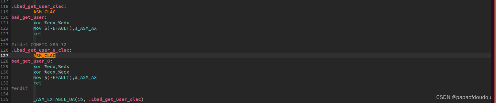 并且在标号1处的修正表实现中也调用了CLAC指令对SMAP功能进行了控制,所以get_user才能安全地访问用户地址空间。