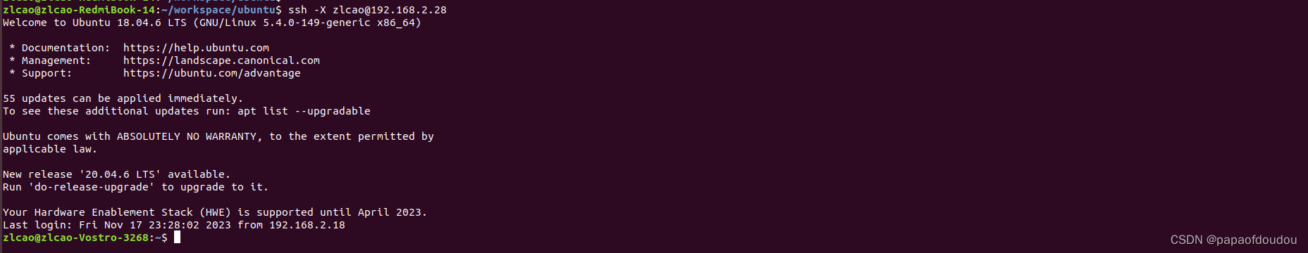 此时,再次执行连接SSH远程主机的命令,将不再需要输入密码: