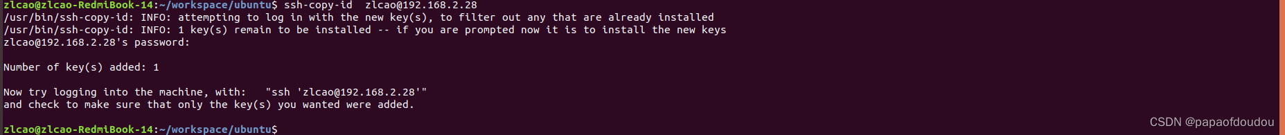 为了避免每次连接的时候都输入密码,可以执行如下步骤: