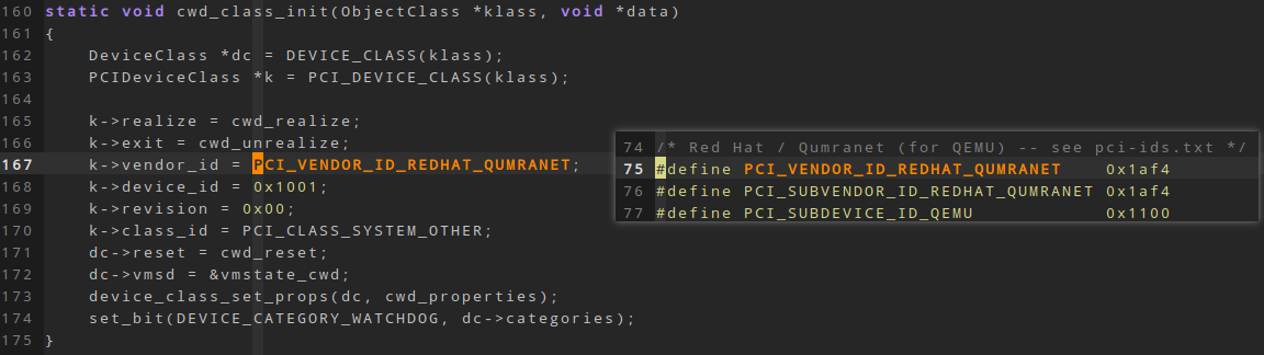 如果在创建模拟设备的时候不注册自己的配置空间回调函数,QEMU会使用默认的: