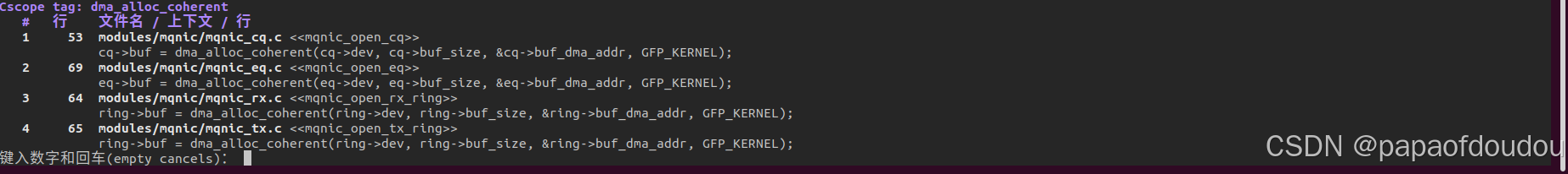 方框图中还有一个EQ,在驱动代码中也有体现,它应该是一个硬件上报事件的队列,本质上也是个Ringbuffer,BUF分配方式也是调用dma_alloc_coherent,在文件mqnic_eq.c中: