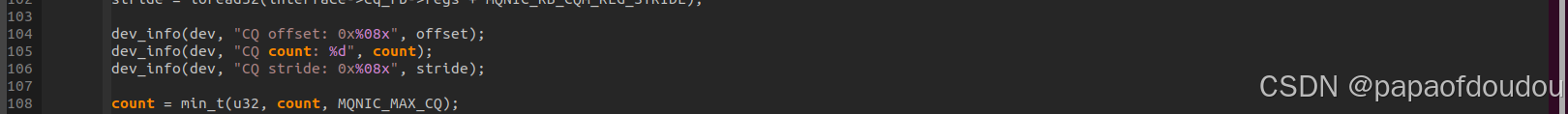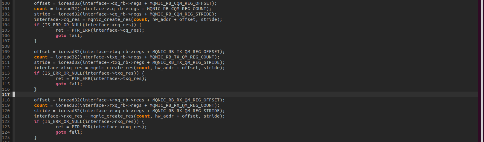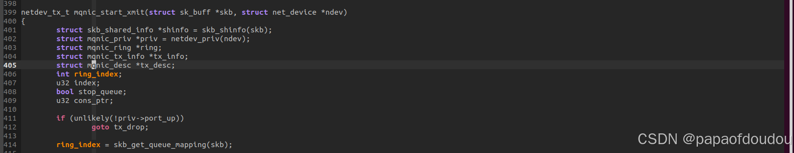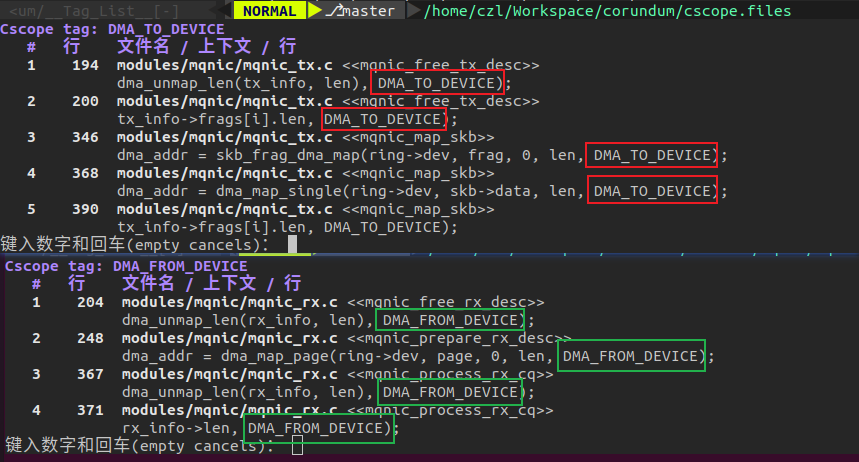 和传统的ringbuffer管理机制不同,corundum驱动实现的时候,接收队列和发送队列的producer ptr和consumer ptr(其实是mqnic_desc idx)都是单调递增的,当软件填满队列后,不会把队列的producer index置0,而是继续加1,这样作的好处是在判断队列是否已满时可用producer index - consumer index,如果其值等于描述符的总个数,则队列已满。当索引队列元素的时候,则是 producer_index&size_mask, size_mask则是队列长度减1,比如队列长度4096时,使index = produer & 0xFFF,这样算出来的index就可以作为索引区访问队列成员了,这种情况下,需要把size设置为2的N次幂。