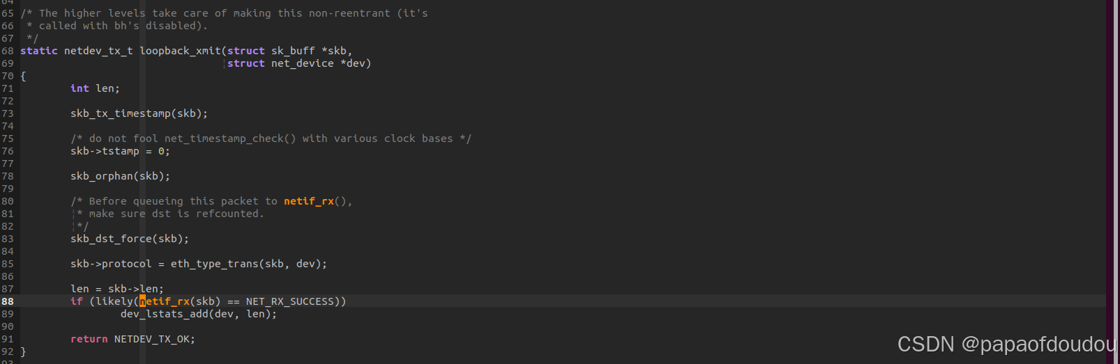 由于本地回环的特殊性,loopback的net_device_ops定义中,是在nod_start_xmit函数中调用netif_rx接收回调的,毕竟,本地回环的意思就是发送和接收直接短接的。