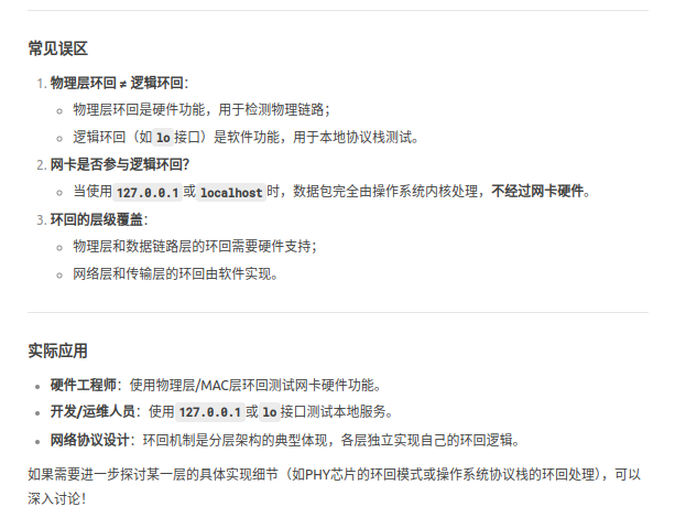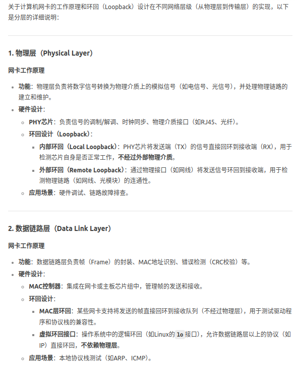 数据在经过协议栈软硬件的不同实现层中,都可以(必须)设计LOOPBACK机制: