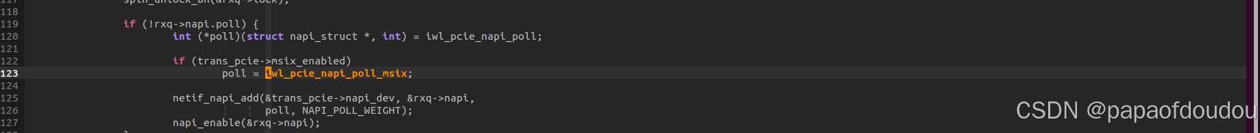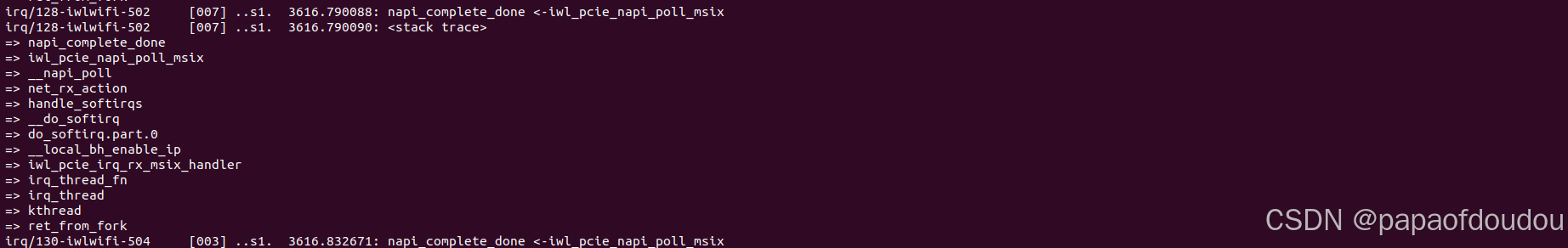 貌似NAPI情况下,接收SKB处理不是调用netif_rx,而是如下堆栈,msix handler是INTEL WIFI无线网卡的中断处理程序。
